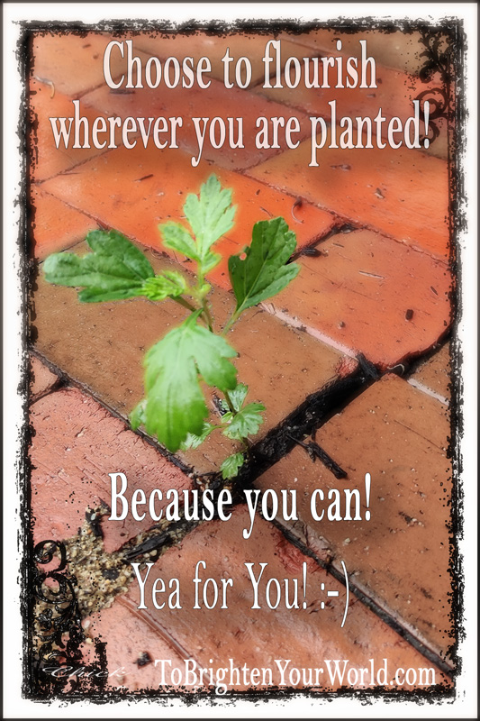 You may not be able to choose where you’re planted; however, you CAN CHOOSE to flourish right where you are. But, DON… you don’t understand my circumstances. You’re RIGHT, I don’t. (How does that feel? To be RIGHT!) What I do know is your attitude towards your circumstances is a choice. CHANGE the way you look at things and the things you look at CHANGE! Think about the for a minute or a day! š Because You Can!