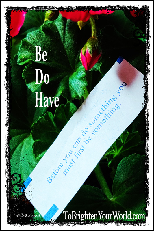 I used to think about what I wanted to have, first. Dreams about stuff, etc. Then I learned that in order to Have I first had to Be. Then there’ the Do step. Finally we get to Have. There is an order of operations. Like, plant then reap.